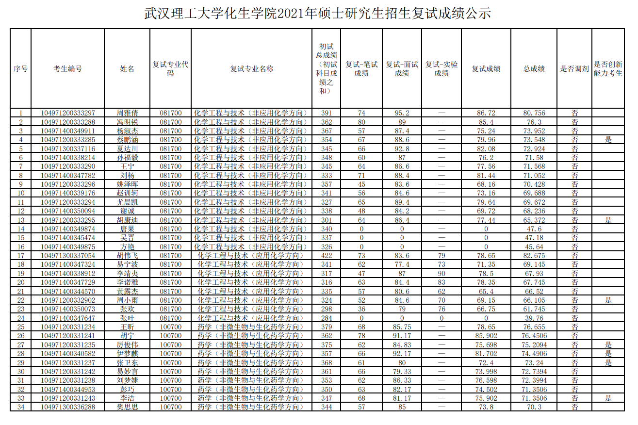 德赢AC米兰官网2021年硕士研究生招生复试成绩公示